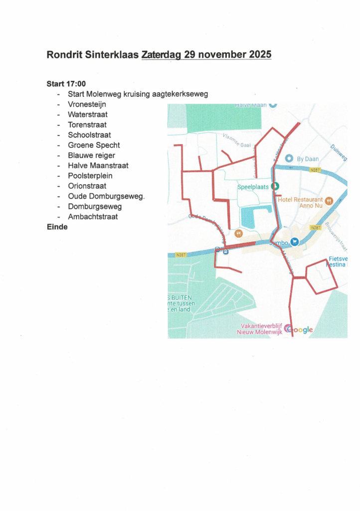 Op vrijdag 28 november en zaterdag 29 november zal Sinterklaas weer door Oostkapelle rijden vanaf 17.00 uur.